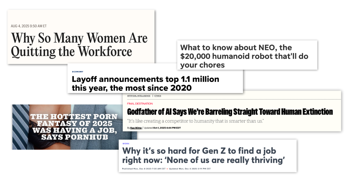 I hope it’s comforting that we’re all here in the strangeness of figuring work out together. The good news is that strange things have happened before, and they’ll happen again. The bad news is that this time it’s robots, unemployment, and existential crises.